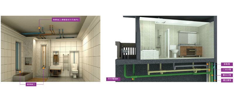 明暗管混合工法方便維修降低維修成本,管線採分流配置,不易阻塞逆流,不鏽鋼材質使用壽命更長,設計雨水回收系統,將雨水回收再利用,節省社區澆灌用水,維護社區綠意更環保。
